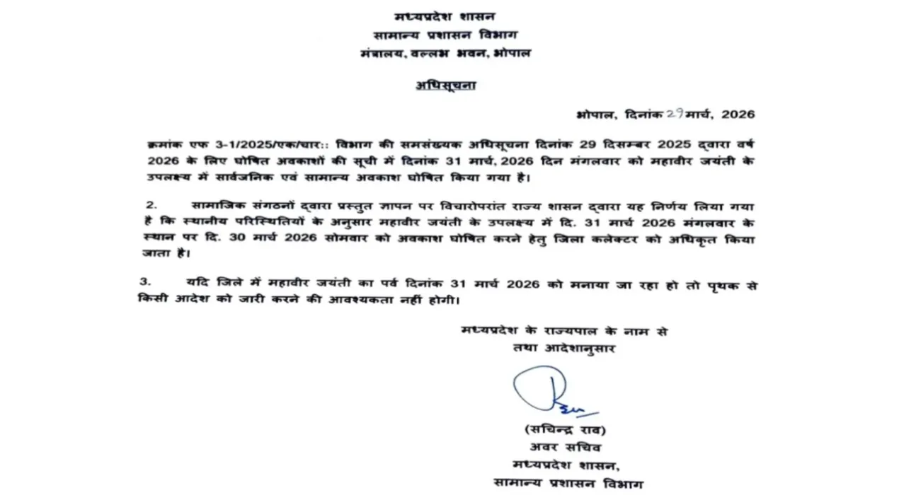 कौड़ियों में बिकी निगम की जमीन! कमिश्नर सविता प्रधान के कार्यकाल में “VIP प्लॉट गेम” का बड़ा खुलासा, न विज्ञापन, न MIC मंजूरी… फिर भी विधायक को आवंटन? सिंगरौली में सिस्टम पर उठे गंभीर सवाल विंध्यनगर के हनुमान मंदिर में सनसनीखेज चोरी के मामले में तीन आरोपी गिरफ्तार Wednesday, March 25, 2026 5:32 AM कौड़ियों में बिकी निगम की जमीन! कमिश्नर सविता प्रधान के कार्यकाल में “VIP प्लॉट गेम” का बड़ा खुलासा, न विज्ञापन, न MIC मंजूरी… फिर भी विधायक को आवंटन? सिंगरौली में सिस्टम पर उठे गंभीर सवाल Sunday, March 29, 2026 11:47 AM 526 करोड़ की कमाई के बाद भी 3 समूह घाटे में क्यों? शराब नीलामी का पूरा गणित क्या है! Sunday, March 29, 2026 11:36 AM ईरान युद्ध का एक महीना, न्यूक्लियर प्लांट पर हमला, अबू धाबी में भारतीय घायल और हूतियों की सीधी लड़ाई Sunday, March 29, 2026 10:53 AM देश कौड़ियों में बिकी निगम की जमीन! कमिश्नर सविता प्रधान के कार्यकाल में “VIP प्लॉट गेम” का बड़ा खुलासा, न विज्ञापन, न MIC मंजूरी… फिर भी विधायक को आवंटन? सिंगरौली में सिस्टम पर उठे गंभीर सवाल 1 अप्रैल 2026 से टोल महंगे, अब देने होंगे ज़्यादा पैसे, अब कैश बंद, FASTag या ऑनलाइन पेमेंट चलेगा, नए नियम लागू करने के पीछे क्या है बड़ी वजह? Sunday, March 29, 2026 9:51 AM Apple IPhone 17e लॉन्च: Apple के सबसे सस्ते स्मार्टफोन iPhone ने भारतीय मार्केट में अपनी पकड़ मजबूत की, Fusion कैमरा और A19 चिपसेट, कीमत जानकर हैरान रह जाएंगे? Sunday, March 29, 2026 9:13 AM रूस का पेट्रोल एक्सपोर्ट बड़ा फैसला: ग्लोबल ऑयल मार्केट में उथल-पुथल, 1 अप्रैल 2026 से एक्सपोर्ट बैन, भारत पर प्रीमियम क्रूड का दबाव क्यों बढ़ा, क्या है बड़ी वजह? Sunday, March 29, 2026 8:22 AM IPL 2026 में आज मुंबई और कोलकाता की टक्कर, वानखेड़े में खेला जाएगा मैच, यहां जानें किसका पलड़ा भारी? Sunday, March 29, 2026 7:56 AM अप्रैल में बांग्लादेश दौरे पर जाएगी न्यूज़ीलैंड की टीम, ODI और T20 सीरीज़ का शेड्यूल जारी Sunday, March 29, 2026 6:28 AM मध्य प्रदेश कौड़ियों में बिकी निगम की जमीन! कमिश्नर सविता प्रधान के कार्यकाल में “VIP प्लॉट गेम” का बड़ा खुलासा, न विज्ञापन, न MIC मंजूरी… फिर भी विधायक को आवंटन? सिंगरौली में सिस्टम पर उठे गंभीर सवाल Sunday, March 29, 2026 11:47 AM 526 करोड़ की कमाई के बाद भी 3 समूह घाटे में क्यों? शराब नीलामी का पूरा गणित क्या है! Sunday, March 29, 2026 11:36 AM खेत में कचरा जलाने की छोटी सी लापरवाही पड़ी भारी, घर का पिछला हिस्सा जलकर राख हो गया Sunday, March 29, 2026 8:39 AM महावीर जयंती की छुट्टी बदली: MP सरकार ने छुट्टी का ऑर्डर बदला, अब 30 नहीं 31 मार्च को ऑफिशियल छुट्टी घोषित Sunday, March 29, 2026 7:28 AM आपका शहर कौड़ियों में बिकी निगम की जमीन! कमिश्नर सविता प्रधान के कार्यकाल में “VIP प्लॉट गेम” का बड़ा खुलासा, न विज्ञापन, न MIC मंजूरी… फिर भी विधायक को आवंटन? सिंगरौली में सिस्टम पर उठे गंभीर सवाल Sunday, March 29, 2026 11:47 AM खेत में कचरा जलाने की छोटी सी लापरवाही पड़ी भारी, घर का पिछला हिस्सा जलकर