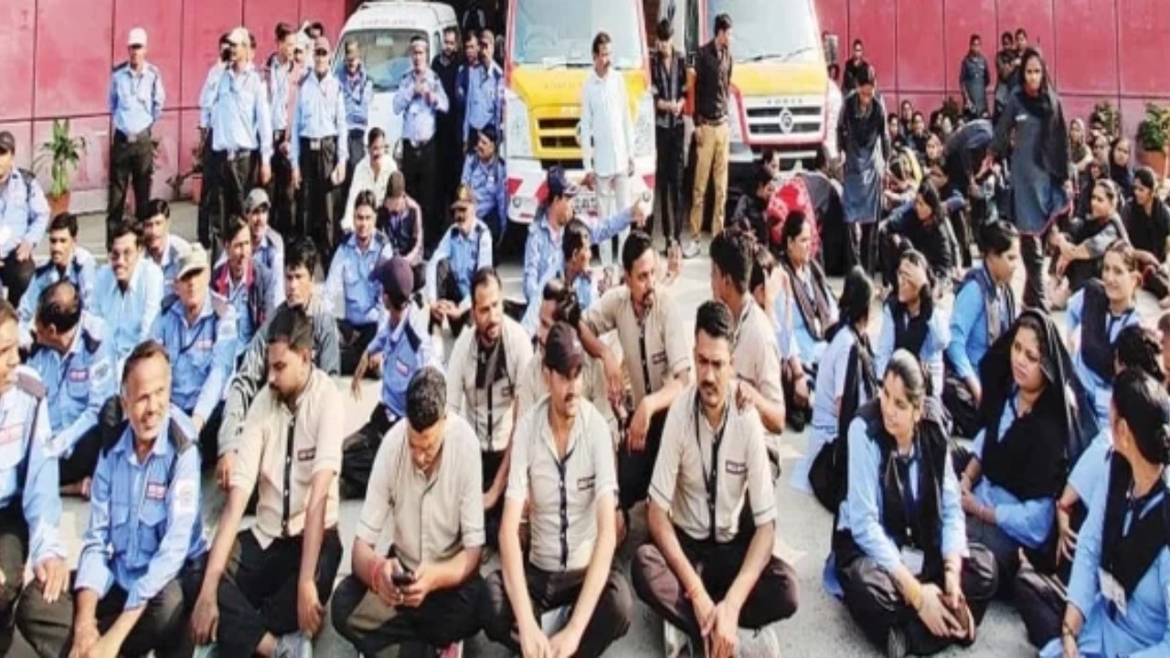 एमवाय अस्पताल के आउटसोर्स कर्मचारी धरने पर, वेतन और एरियर न मिलने का किया विरोध