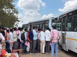 चार बसों से भेजे गए मरीज व परिजन
